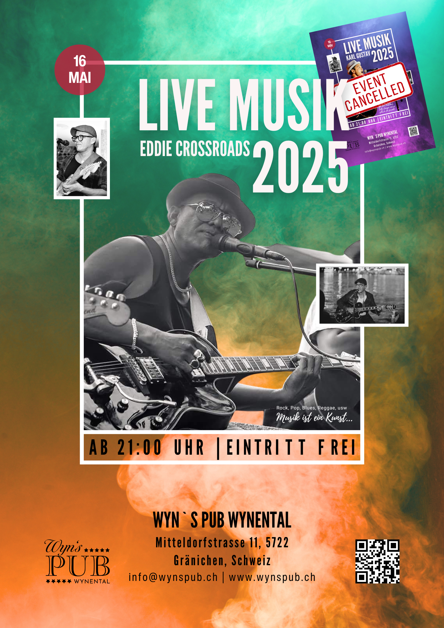 Wir müssen leider bekanntgeben, dass das ursprünglich geplante Event mit Karl Gustav aufgrund von Krankheit abgesagt wurde. Doch keine Sorge! Stattdessen freuen wir uns, Eddie Crossroads für einen großartigen Abend mit Live-Musik willkommen zu heißen.